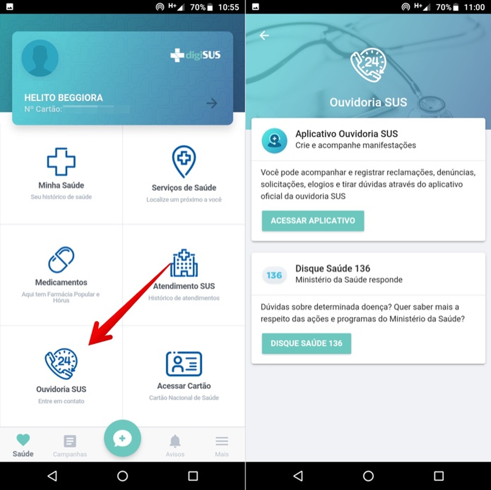 Passo 6. Em "Ouvidoria SUS", você pode acompanhar e registrar