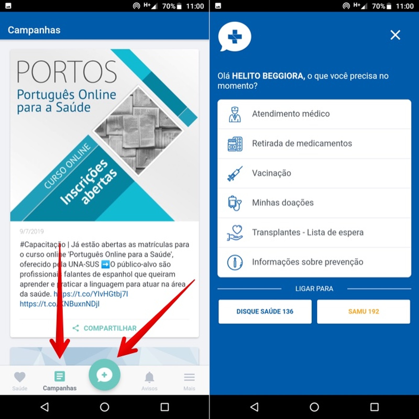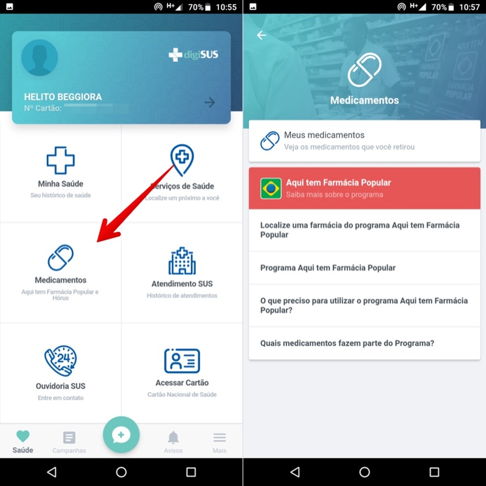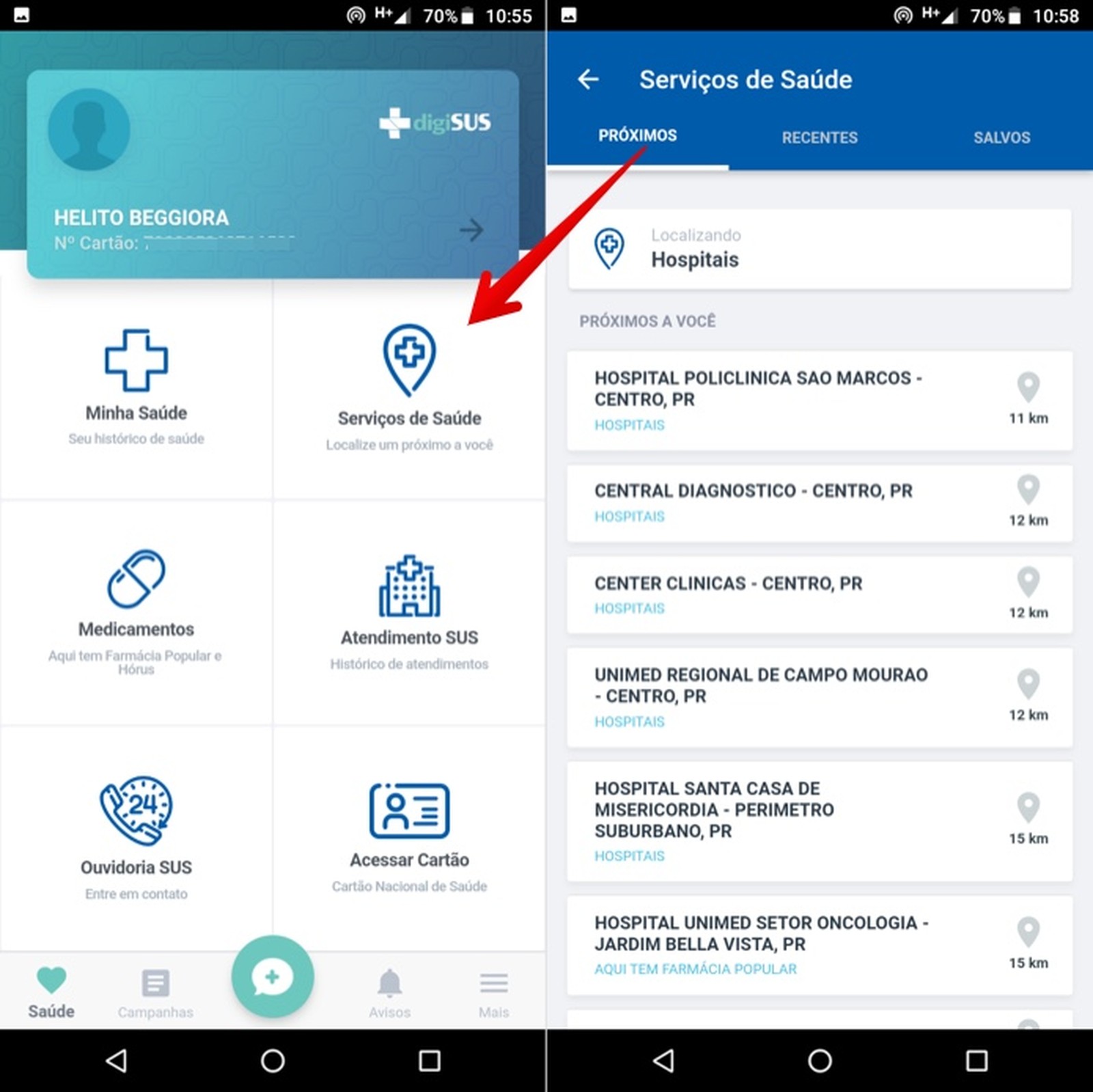 hospitais e farmácias, marcar consultas, acompanhar agendamentos e mais.