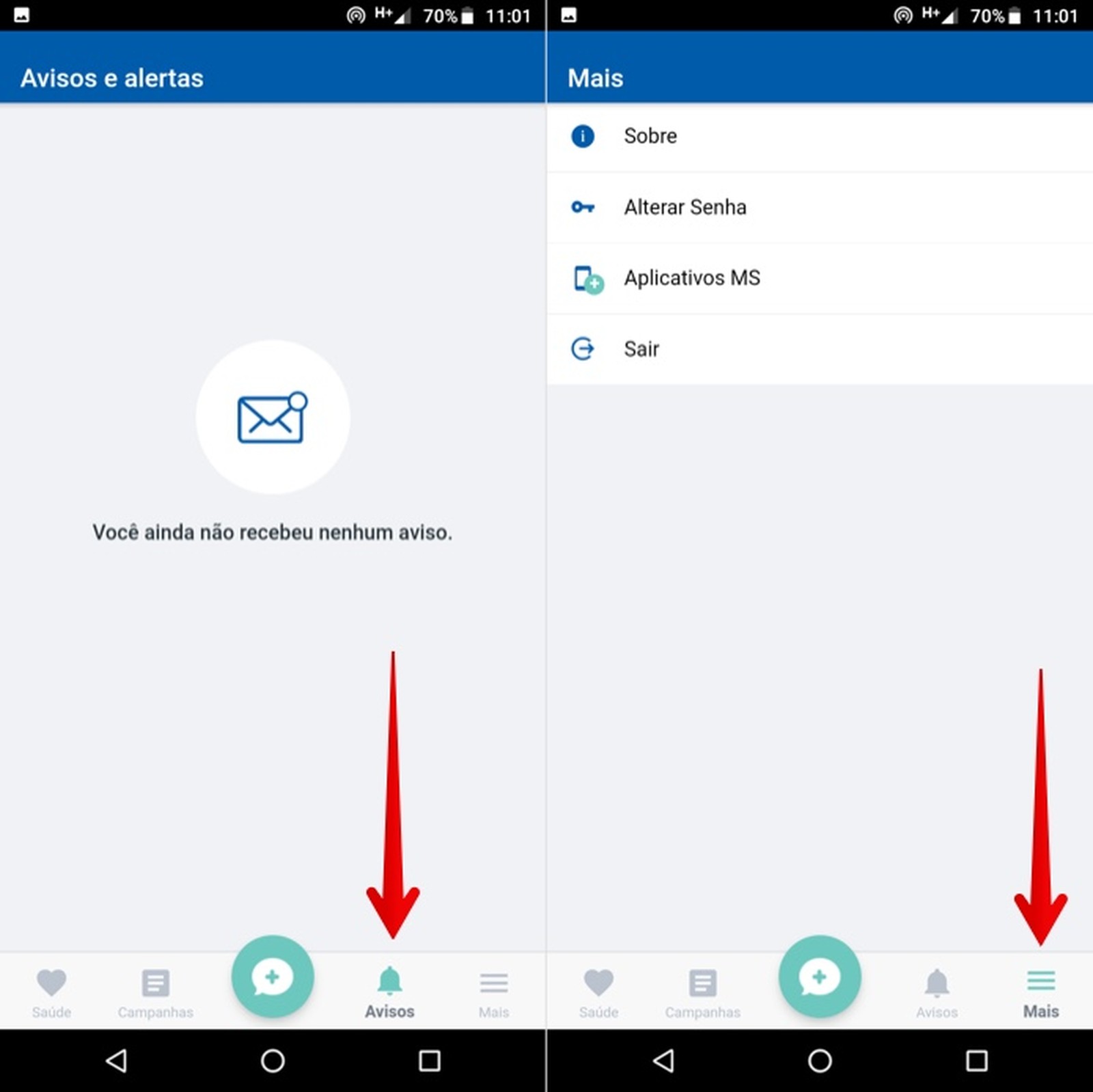 aplicativos do Ministério da Saúde e sair da sua conta.