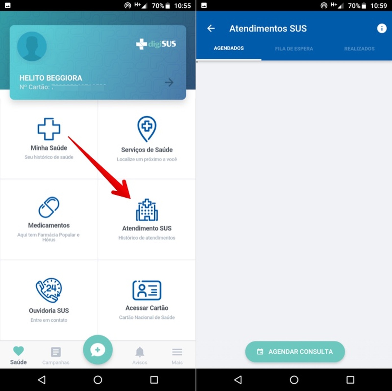 Passo 5. Toque em "Atendimento SUS" para ver as suas consultas